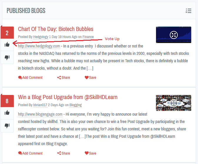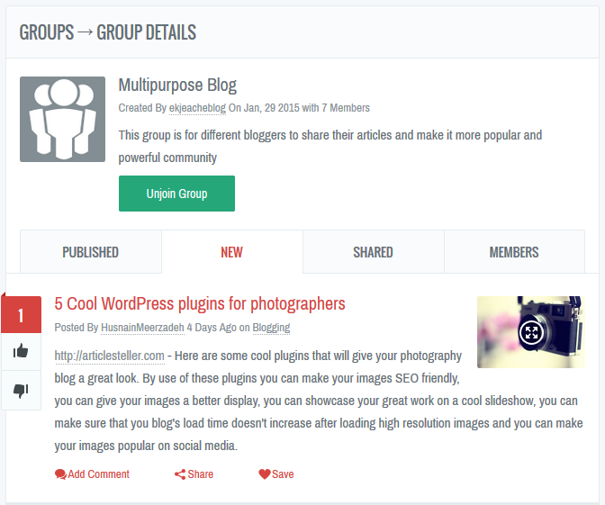 When you join a group, you will be able to see what other members have shared and how much vote they have received.