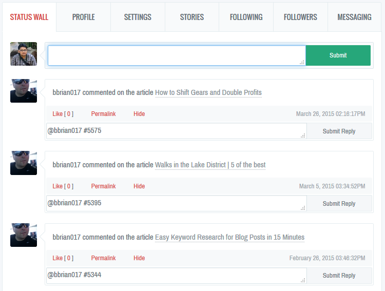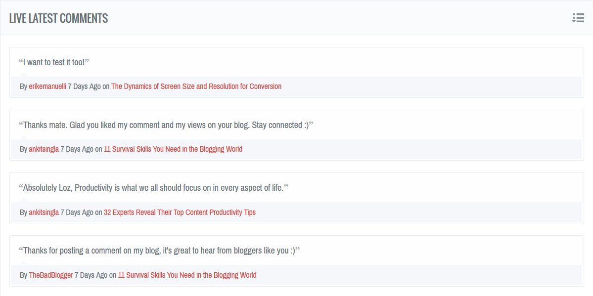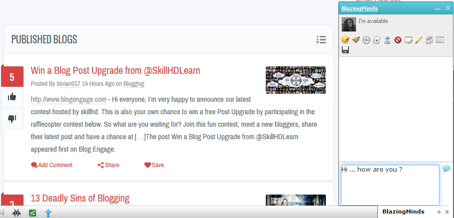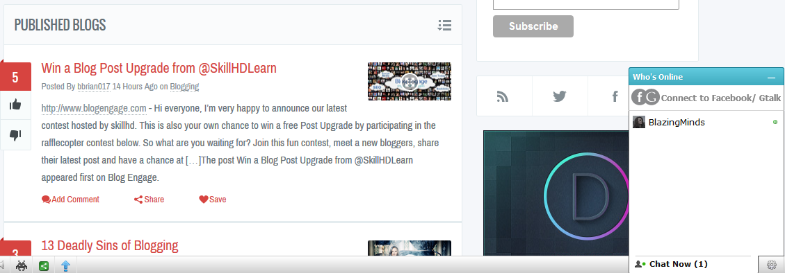 You can check out some of the top users of Blog Engage on this page. They are ranked based on 3 criteria - Blogs, Published and Comments.