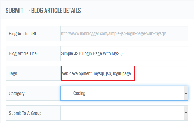You can add tags to your posts, while submitting it on Blog Engage. Make sure you add tags that are relevant to your post.