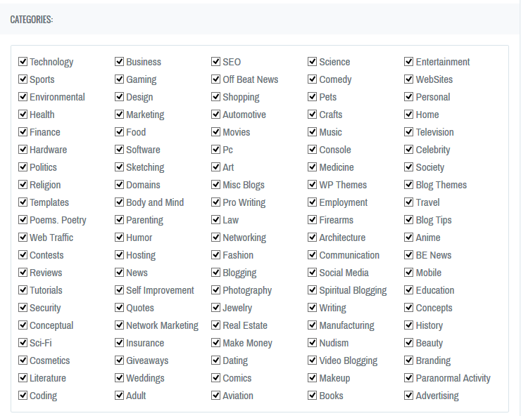 You can select your categories on which you want to receive updates on your Blog Engage homepage.